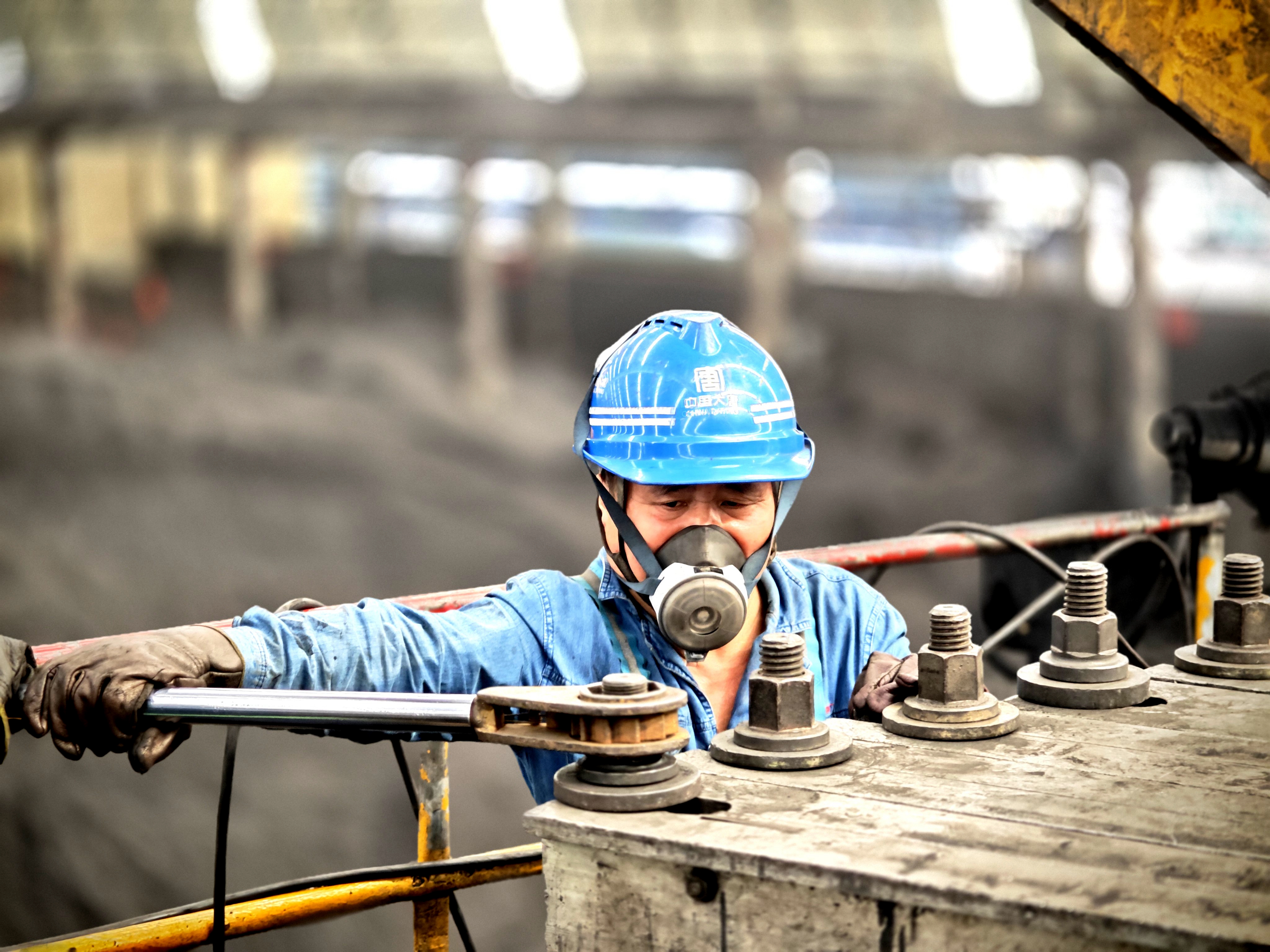 高溫讓時間變得格外漫長。汗水浸透工服,又被暖干,留下一圈圈白色鹽漬。