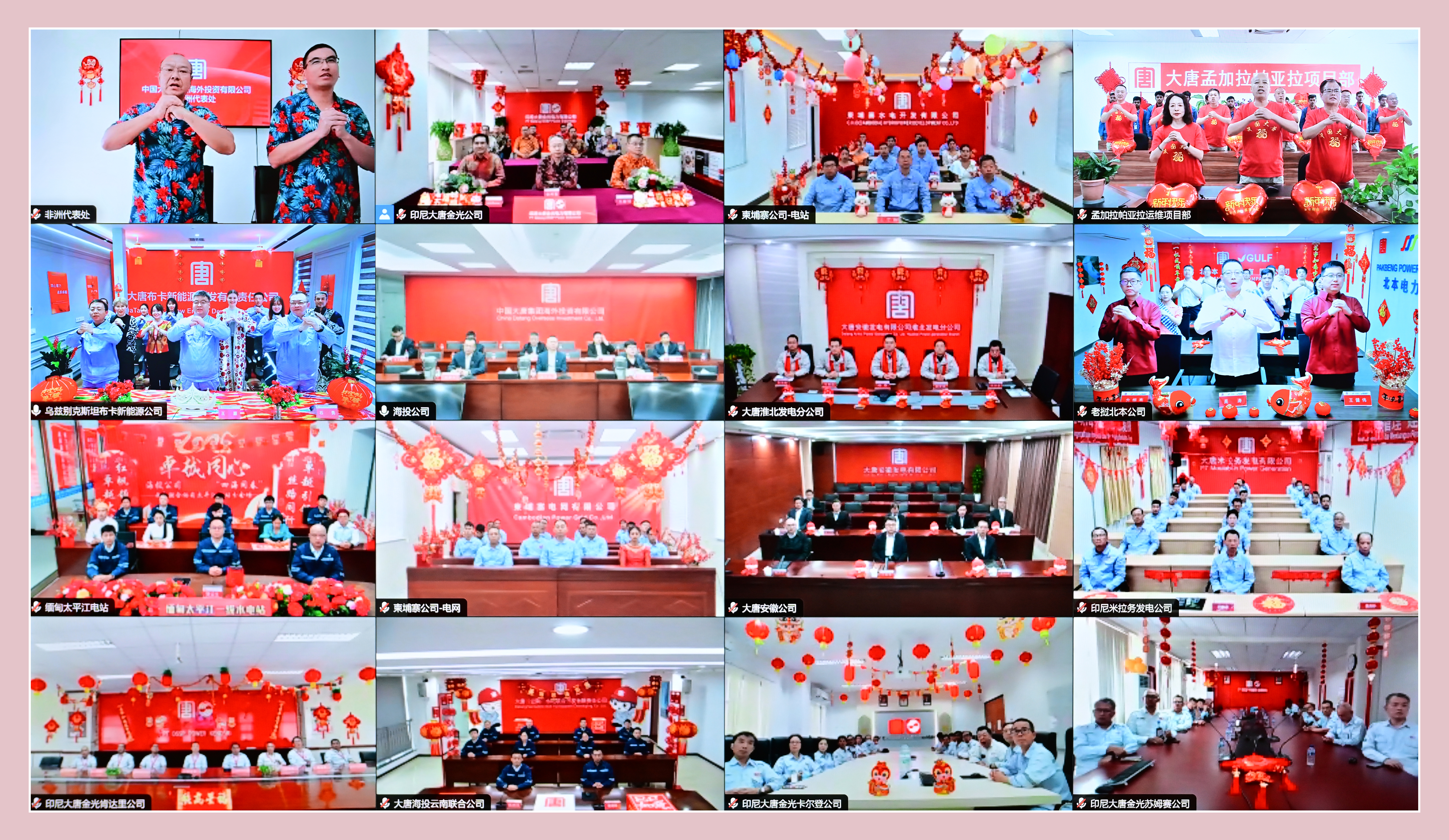 本網(wǎng)訊? “可敬的海外同志們,大家辛苦了!”“祝愿大家度過一個祥和喜慶的春節(jié),祝愿大家在海外工作平平安安、順順利利、心想事成!”1月26日,在農(nóng)歷乙巳蛇年來臨之際,中國大唐集團有限公司召開2025年境外機構(gòu)新春慰問會。集團公司黨組書記、董事長鄒磊以視頻連線方式,代表集團公司黨組向奮戰(zhàn)在境外一線的干部職工及家屬拜年,向他們致以真切的關(guān)懷慰問及美好的新春祝福。