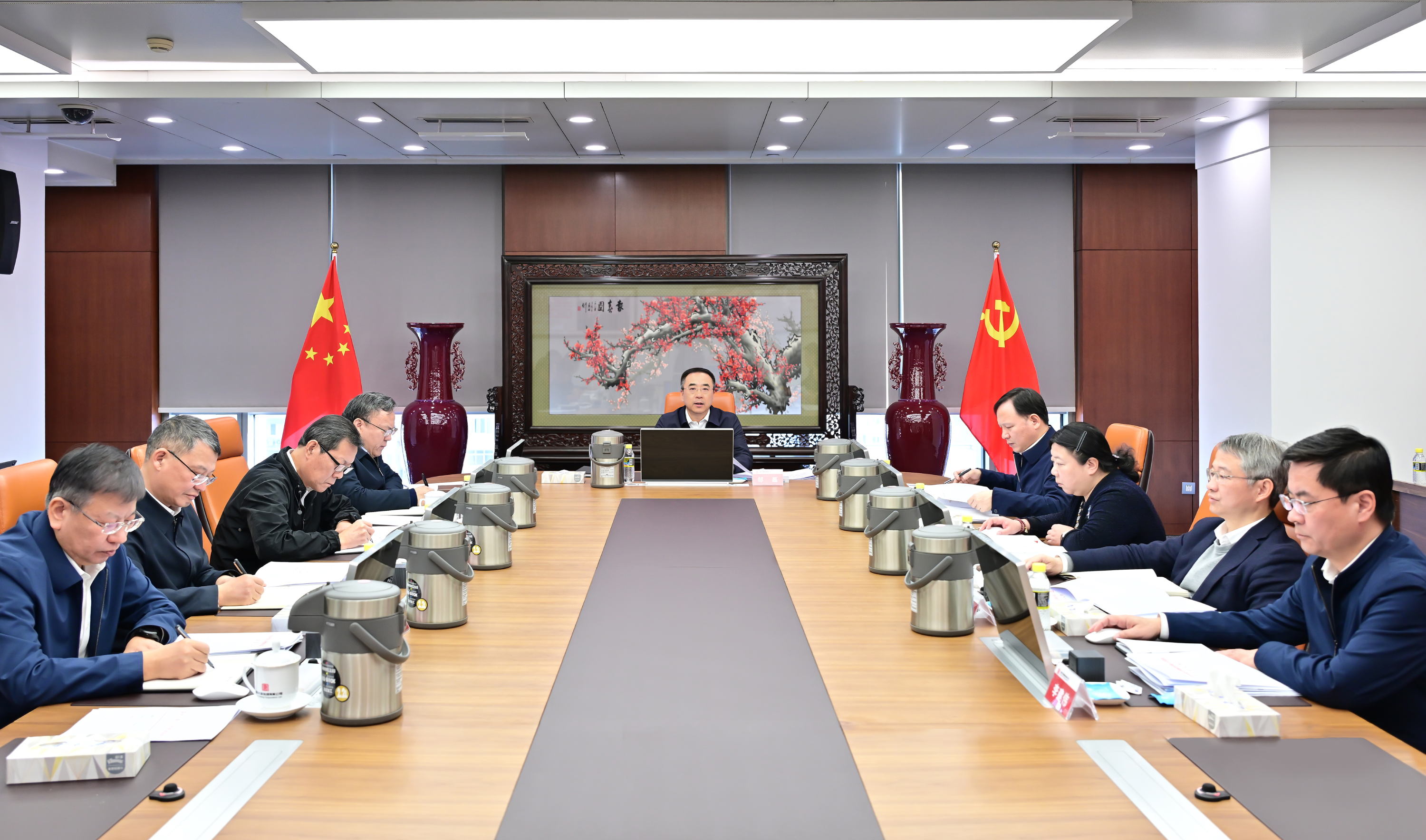 本網訊 2月10日,中國大唐集團有限公司黨組書記、董事長鄒磊主持召開黨組會議,傳達學習習近平總書記重要文章、重要指示和有關會議精神,研究貫徹落實舉措。集團公司領導張傳江、余波、王瑛、曲波、陶云鵬、茍偉、李建偉、王海騰參加會議。