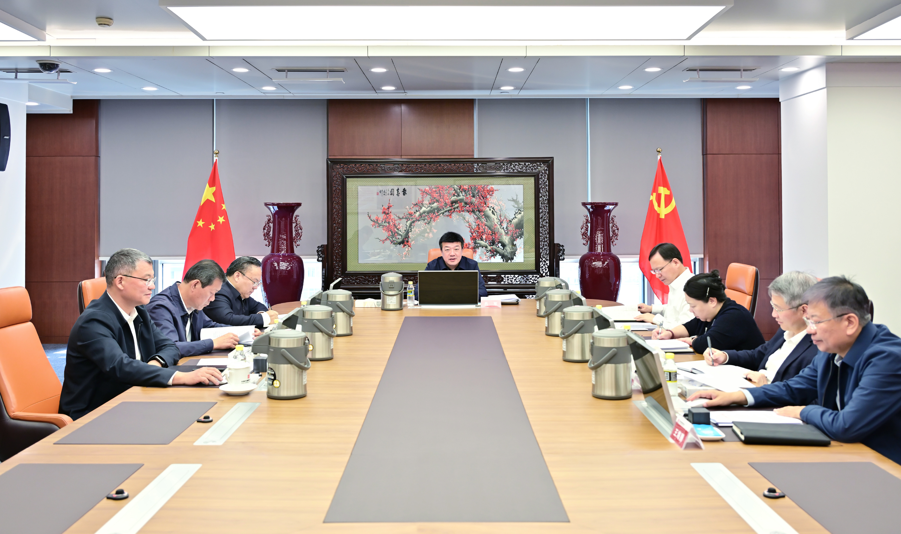 本網訊 4月27日,中國大唐集團有限公司黨組書記、董事長呂軍主持召開黨組會議,傳達學習近期習近平總書記重要講話、重要文章、重要指示精神和中央有關文件精神,研究貫徹落實措施。集團公司領導張傳江、余波、王瑛、曲波、陶云鵬、茍偉、王海騰參加會議。