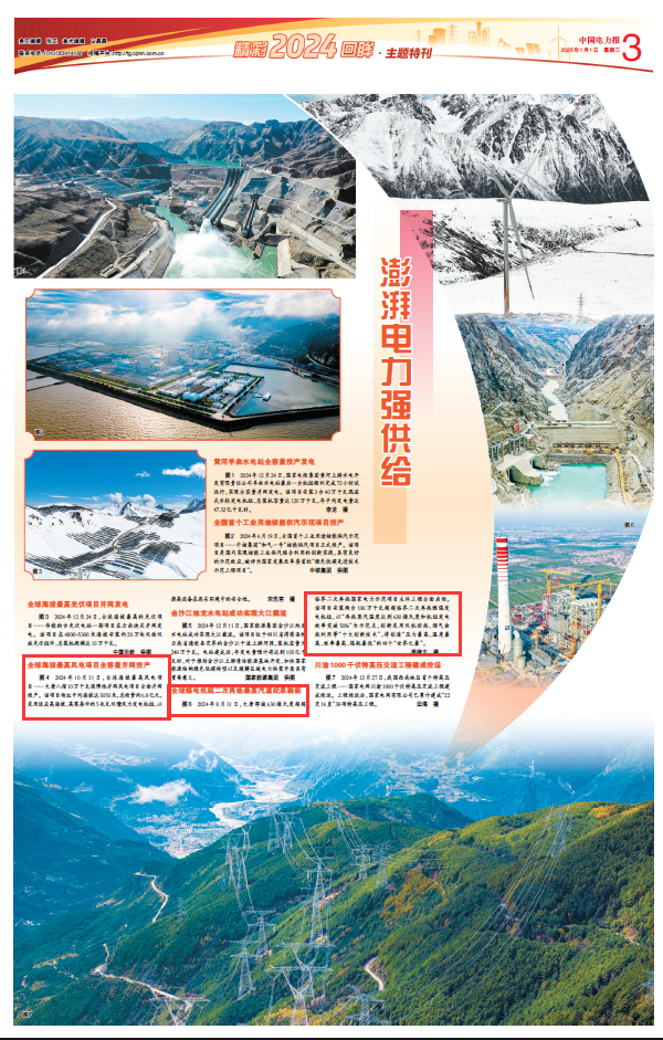 【中國電力報]全球海拔最高風電項目全容量并網(wǎng)投產(chǎn) 全球煤電機組二次再熱最高汽溫紀錄刷新