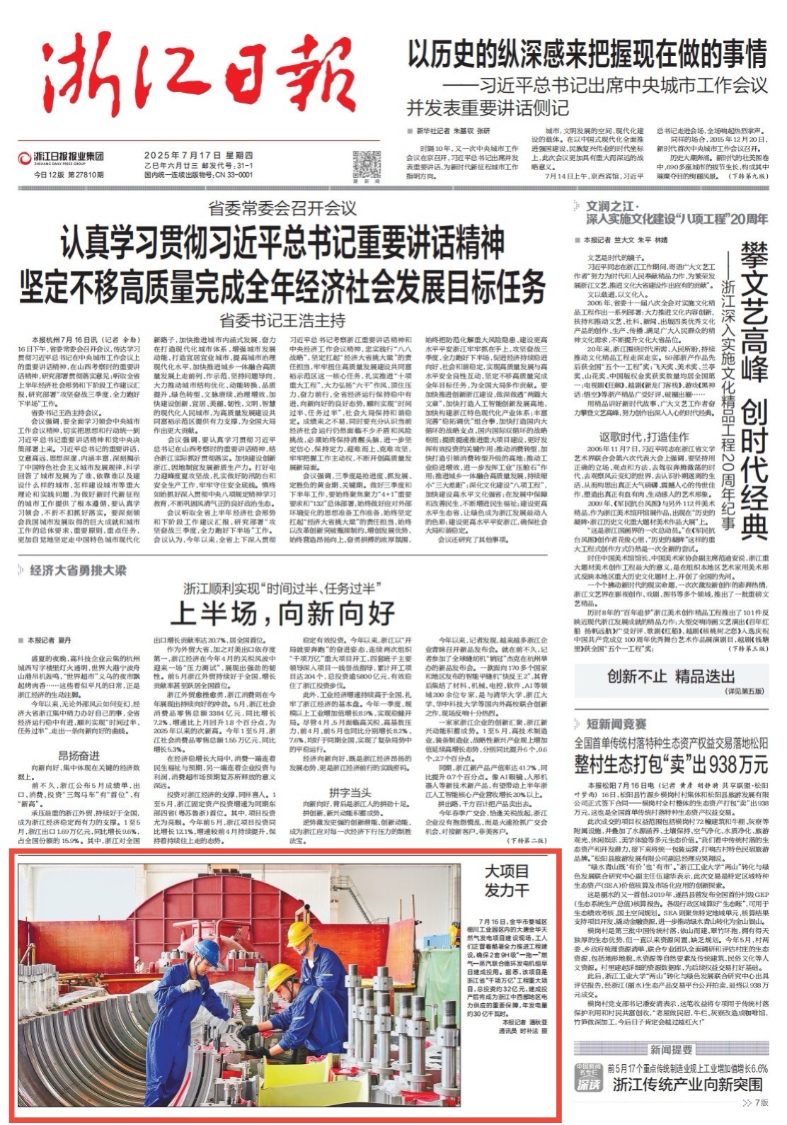 [浙江日報]2025-7-17-頭版:大項目 發力干—大唐(金華)清潔能源有限公司