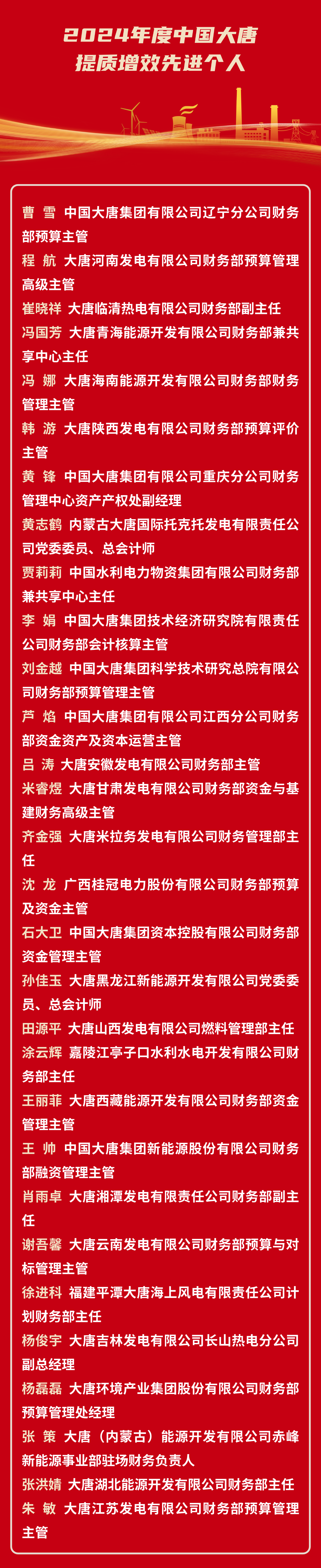 2024年度中國大唐集團有限公司提質增效先進個人