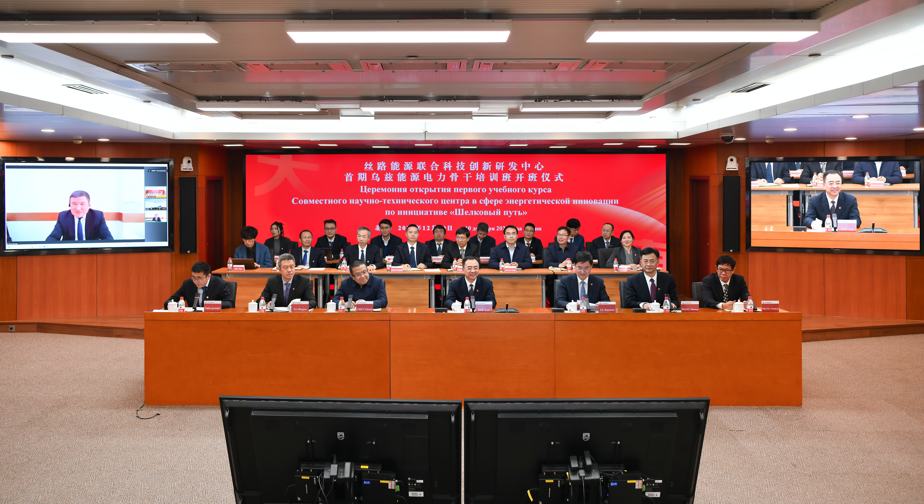 本網訊 12月10日,中國大唐集團有限公司在烏茲別克斯坦發起成立的絲路能源聯合科技創新研發中心舉行首期烏茲能源電力骨干培訓班開班儀式。烏茲別克斯坦能源部部長米爾扎馬赫穆多夫,中國大唐黨組書記、董事長鄒磊出席開班儀式并致辭。