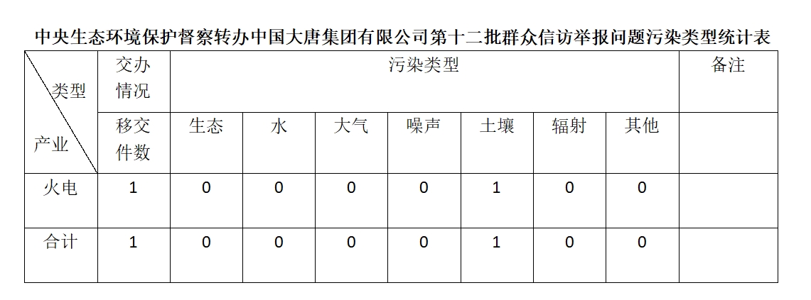 2025年6月16日,中央第七生態(tài)環(huán)境保護(hù)督察組向中國(guó)大唐集團(tuán)有限公司移交第十二批群眾信訪舉報(bào)件,共計(jì)1件,為來(lái)信舉報(bào),涉及土壤問(wèn)題1個(gè)。所有舉報(bào)件辦理工作已第一時(shí)間進(jìn)入調(diào)查核實(shí)辦理程序,辦理情況將按照相關(guān)要求反饋督察組,并及時(shí)向社會(huì)公開(kāi)。